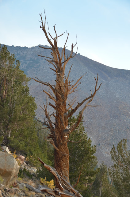 The time of year can make quite a difference in what you may see. Because of the presence of Aspens you might have a chance to see some nice color amidst the stands of pine. In the distance you can see the Palisades Glacier. All of the forest fires made the air too hazy for good shots of the Sierras.